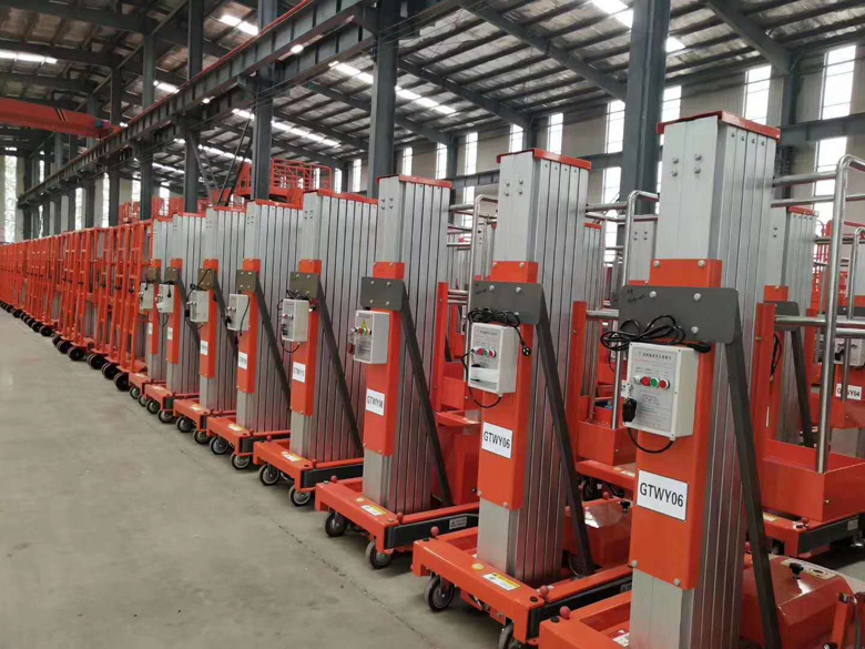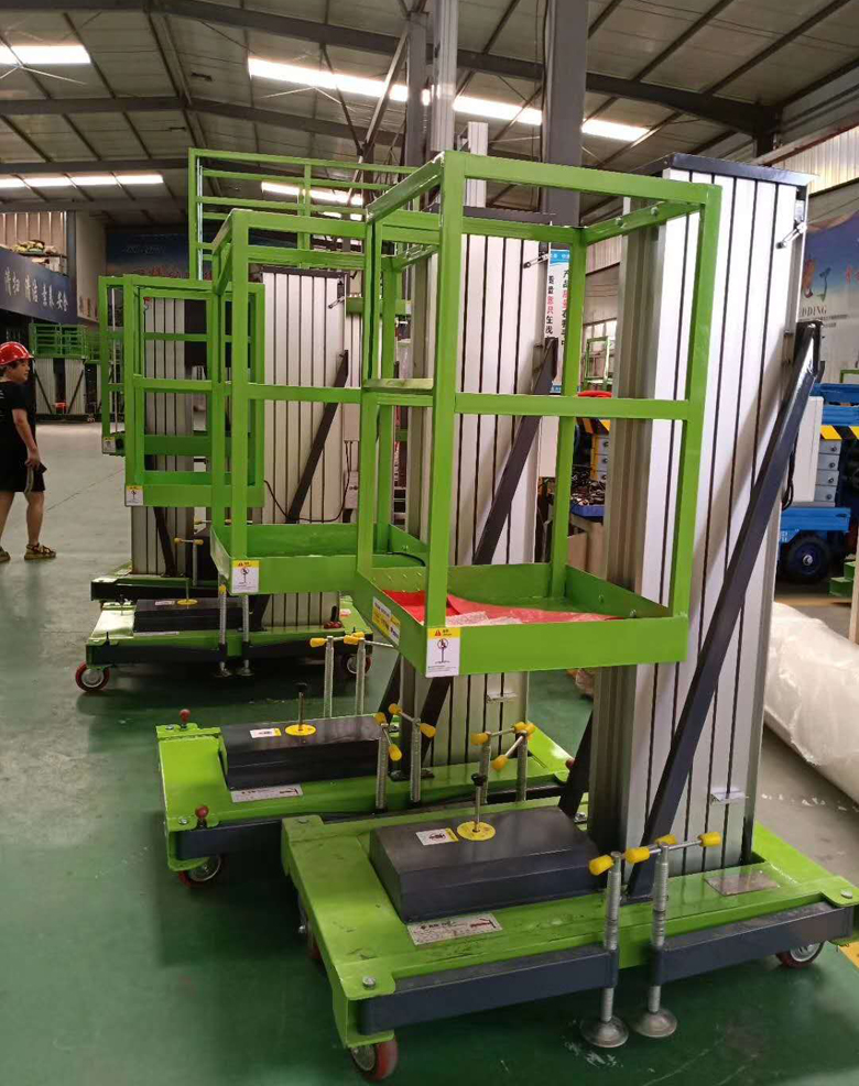 鋁合金式升降平臺整體采用高強度鋁型材精制而成由于型材強度高,具有造型美觀、體積小、重量輕、結構緊湊、移動方便、升降平臺平穩、操作方便、安全可靠等優點。令高空作業更方便快捷,能夠快速、慢速行走,可調速,是現代企業高效安全生產之理想高空作業設備。主要產品分為單立柱鋁合金,雙立柱鋁合金,三立柱鋁合金、四立柱鋁合金。