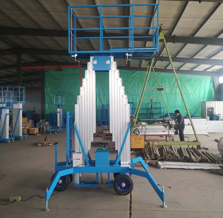 整體采用高強度鋁型材精制而成由于型材強度高,具有造型美觀、體積小、重量輕、結(jié)構(gòu)緊湊、移動方便、升降平臺平穩(wěn)、操作方便、安全可靠等優(yōu)點。令高空作業(yè)更方便快捷,能夠快速、慢速行走,可調(diào)速,是現(xiàn)代企業(yè)高效安全生產(chǎn)之理想高空作業(yè)設(shè)備。主要產(chǎn)品分為單立柱鋁合金,雙立柱鋁合金,三立柱鋁合金、四立柱鋁合金。