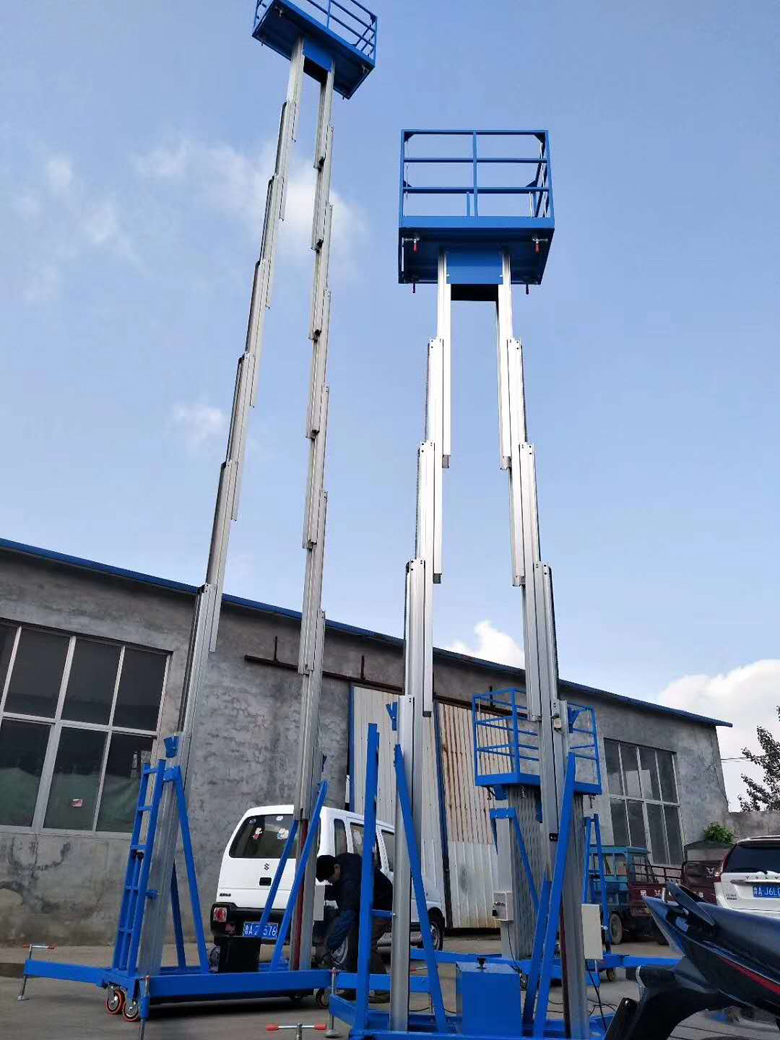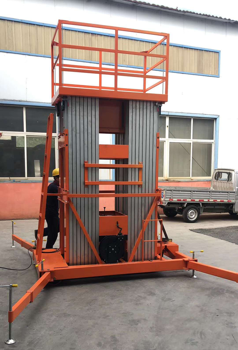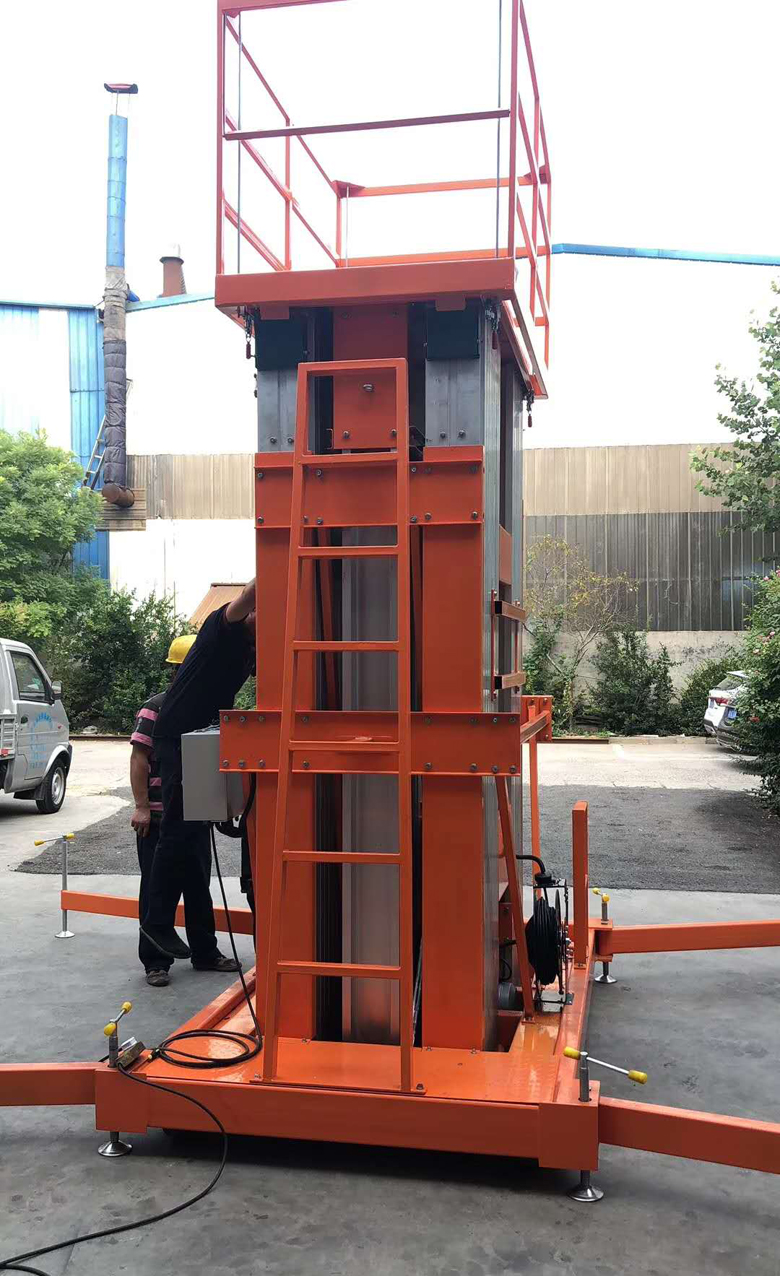 鋁合金式升降機整體采用高強度鋁型材精制而成由于型材強度高,具有造型美觀、體積小、重量輕、結構緊湊、移動方便、升降平臺平穩(wěn)、操作方便、安全可靠等優(yōu)點。令高空作業(yè)更方便快捷,能夠快速、慢速行走,可調(diào)速,是現(xiàn)代企業(yè)高效安全生產(chǎn)之理想高空作業(yè)設備。主要產(chǎn)品分為單立柱鋁合金,雙立柱鋁合金,三立柱鋁合金、四立柱鋁合金。