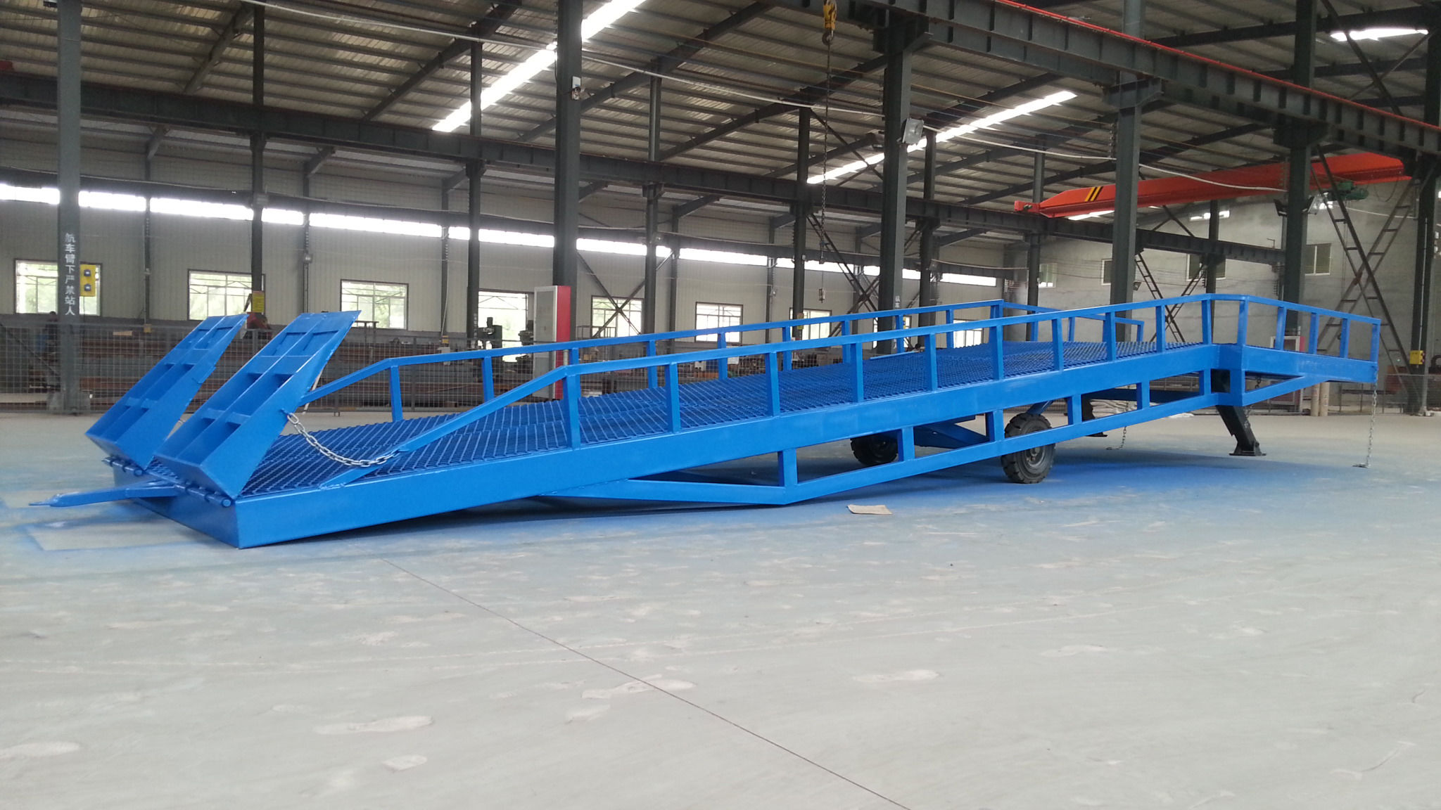 ◆免費保修一年,終身成本價維修,48小時內上門。 移動登車橋 移動式液壓登車橋廣泛用于無裝卸設備的貨臺以及流動裝卸場所,是與叉車配合使用的貨物裝卸輔...