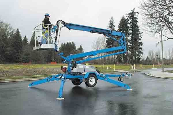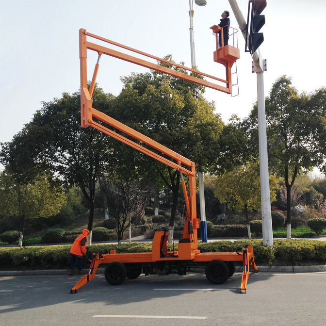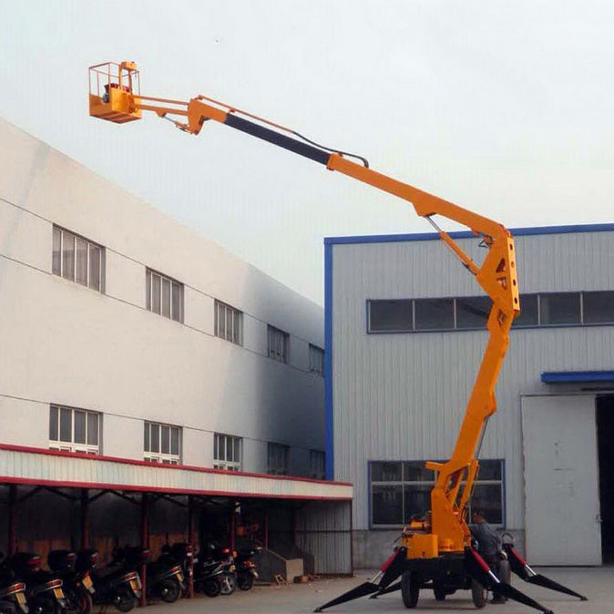 牽引折臂式高空作業平臺:移動方便,曲臂結構緊湊.采用新型優質型鋼,強度高,重量輕,直接接入交流電或采用車自身動力啟動,架設速度快,具有伸縮臂,工作臺既可升高又可延伸,還可360度旋轉,易于跨越障礙物到達工作位置,是理想的高空作業設備.